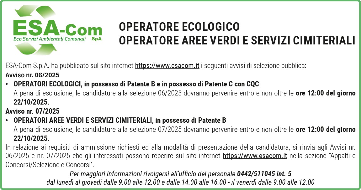 ESA-Com SpA ha per oggetto l’organizzazione, la gestione e l’esecuzione in proprio o a mezzo di terzi di servizi in materia ambientale.